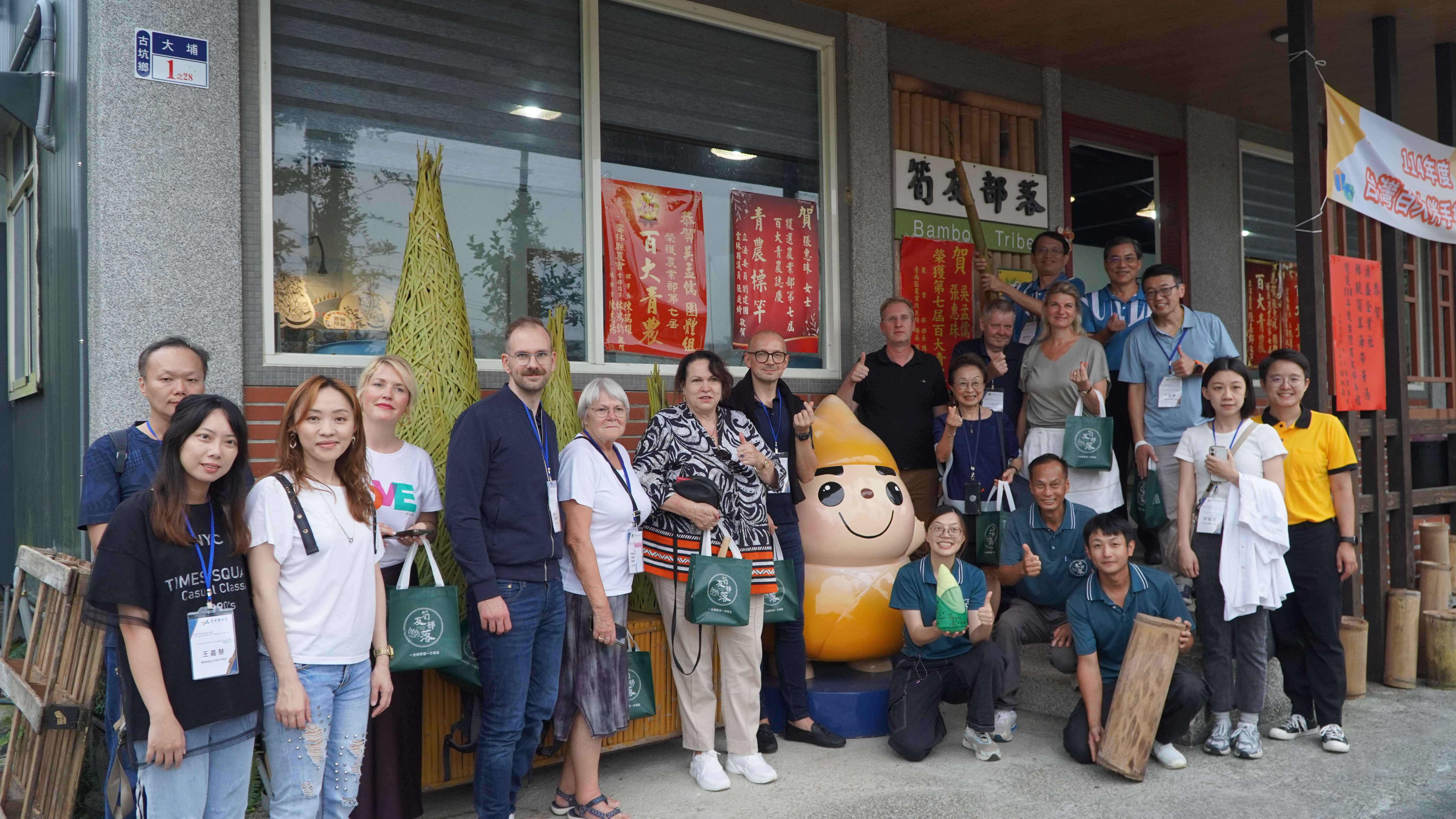 隨後一行人參訪大埔社區生態教育園區,園區除了擁有全長2公里的油桐花步道,更保留了豐富的濕地生態。大埔社區發展協會長期推動麻竹產業活化與農村再生,從竹葉、竹材到竹筍皆加以轉化再利用,形成具特色的循環經濟模式。德國貴賓亦親手體驗醬筍DIY課程,感受在地農村文化與生活智慧。