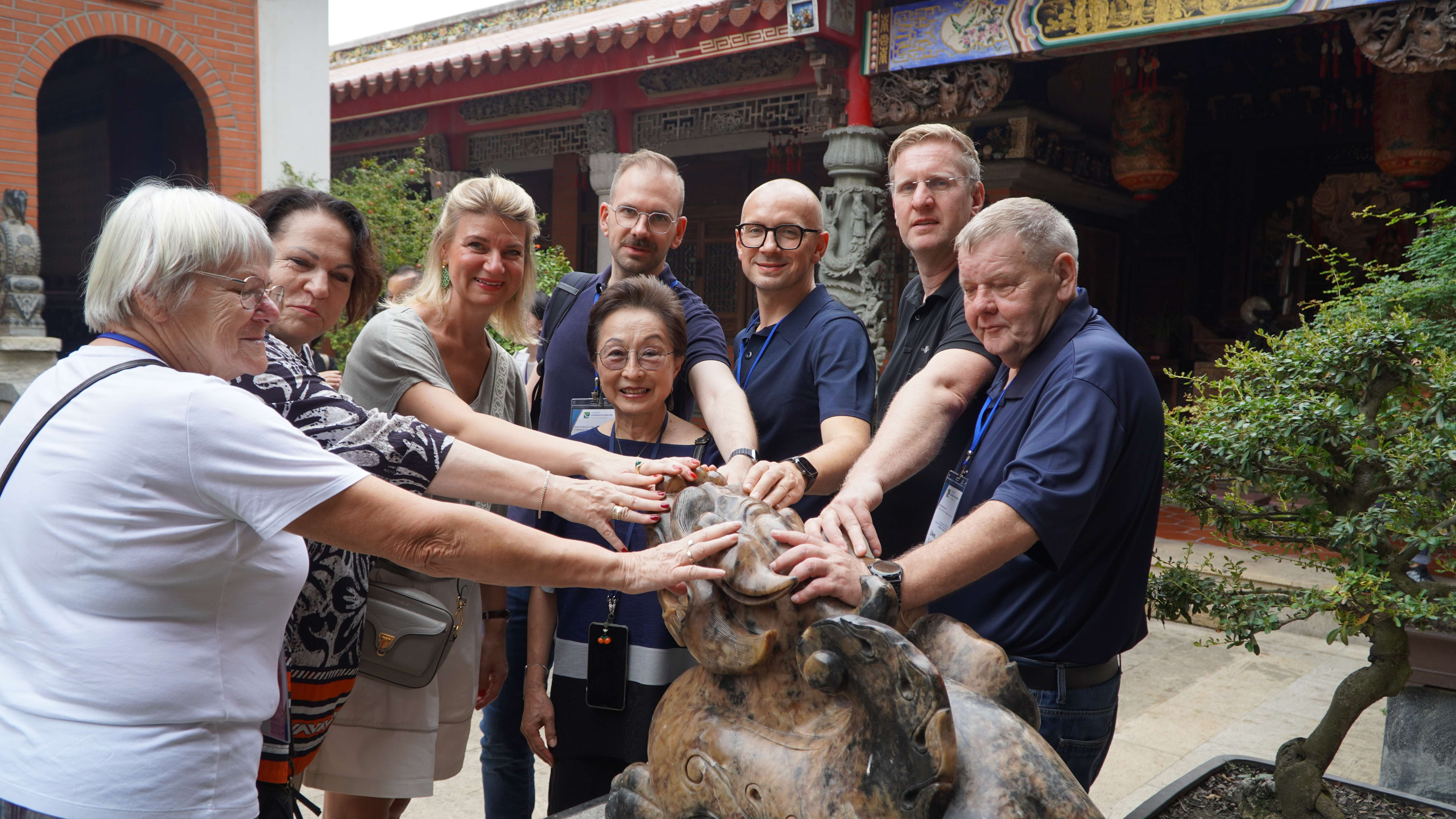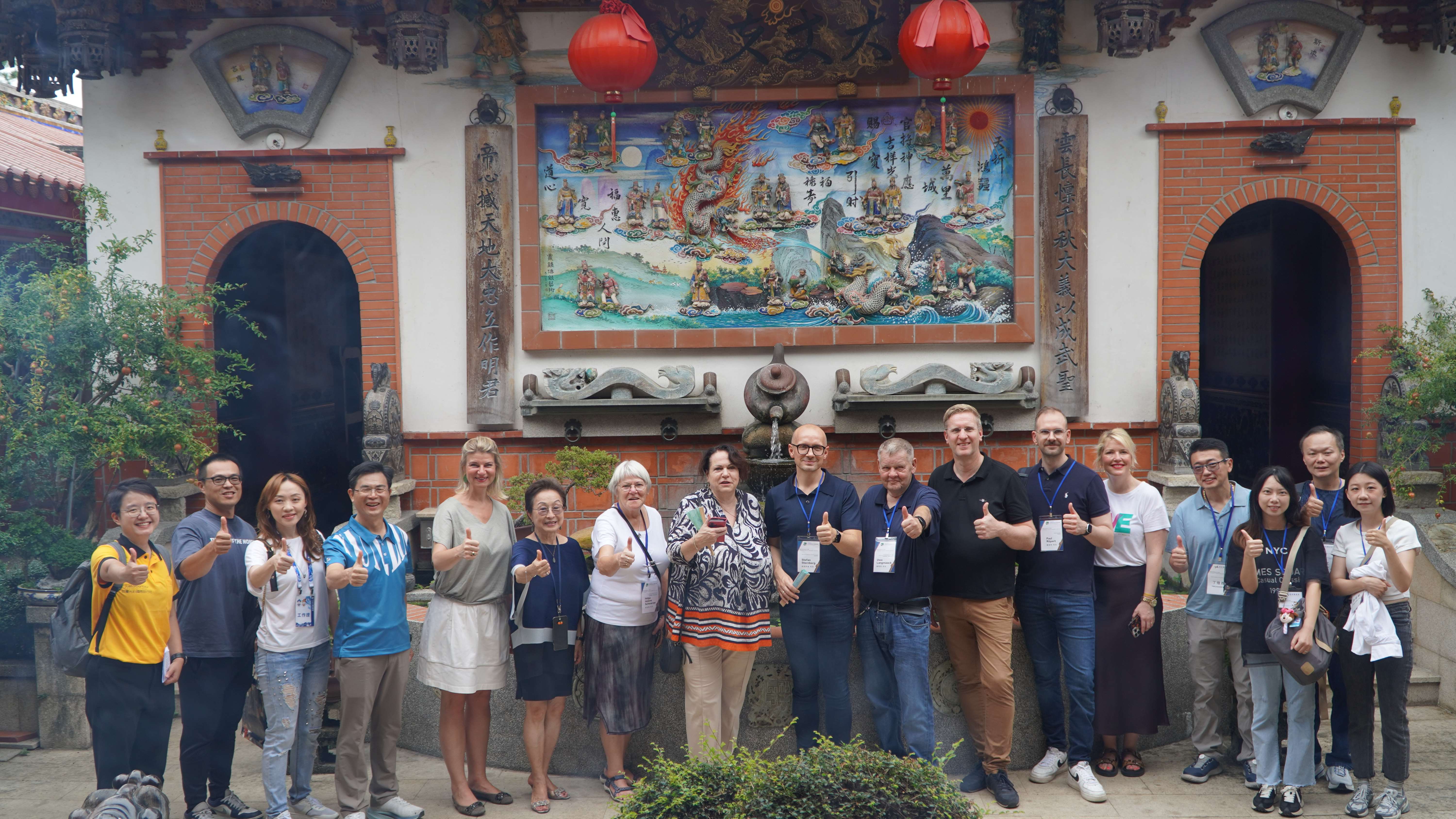 交流團首先造訪虎尾持法媽祖宮,其建築結合藝術展現樸素文雅之美,是地方重要信仰中心。廟方人員介紹,持法媽祖宮除傳承傳統宗教文化外,亦積極提倡環保理念,不燒金紙,展現兼顧信仰與永續的現代宗教精神。廟方長年投入公益與文教活動,凝聚地方社會向心力,德國交流團成員對廟宇莊嚴氛圍與媽祖慈悲精神印象深刻。