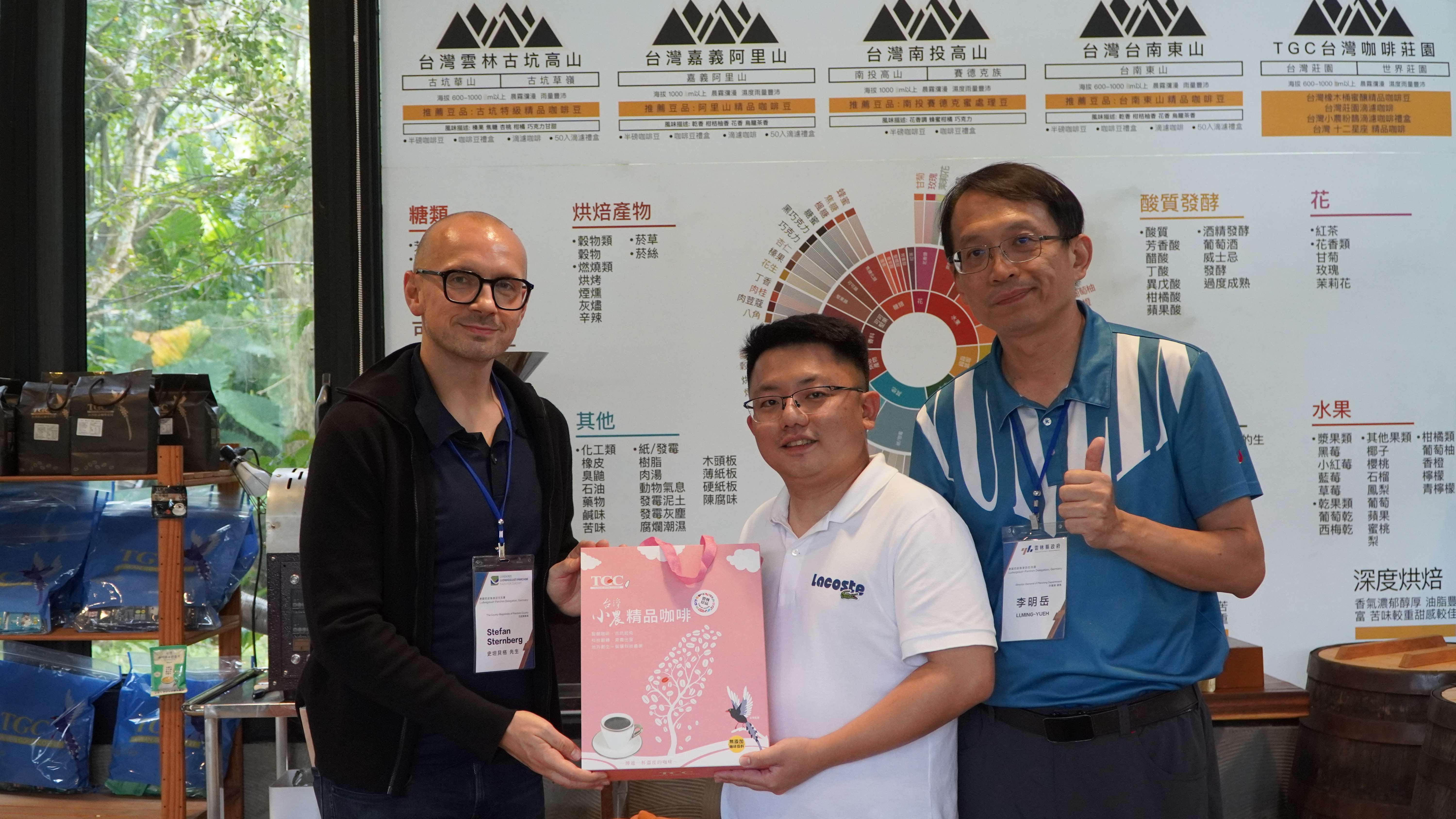 下午交流團前往古坑TGC台灣咖啡莊園,創辦人徐飴鴻表示,莊園與在地小農契作,共同研發精品咖啡豆,並導入AI物聯網管理系統,建立從種植、生產到行銷的全方位智慧流程。面對氣候變遷挑戰,TGC推動自有綠電與永續農業,實踐「從農地到電力」的循環理念,打造結合科技與環保的「咖啡革命」,展現雲林智慧農業的創新力。